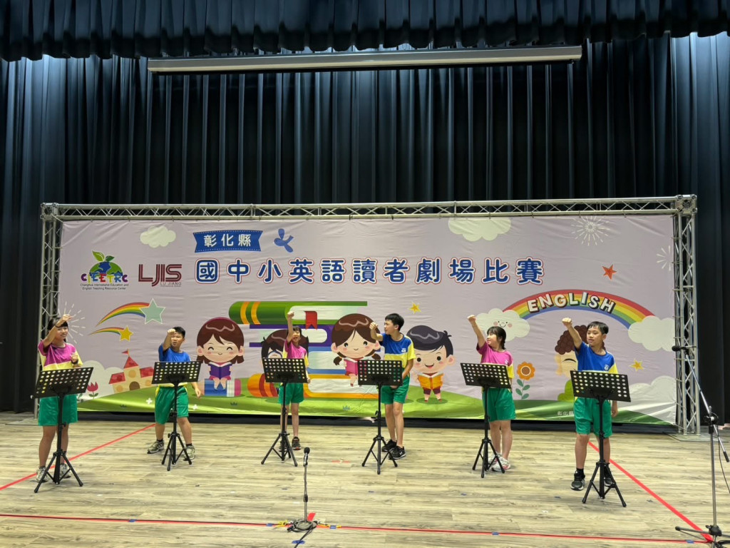 本校六1蔣宜晟、柯沁誼、六3李佳頤、葉芷維、六4謝亦宬、六4 黃靖宸同學,參加彰化縣114學年度國中小英語讀者劇場比賽,榮獲國小A組(19班以上學校)優勝佳績! 感謝魏止企老師及外師Gera老師辛勤指導!!